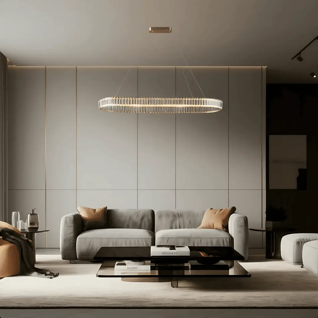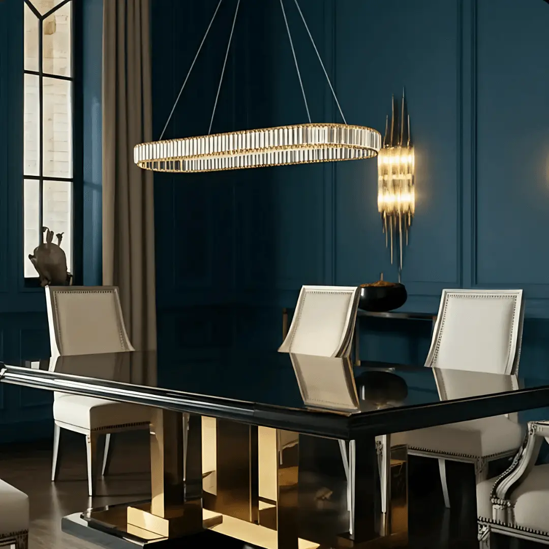 נברשת קריסטל דקורטיבית ומודרנית, אור לבן חם ופיזור אחיד.