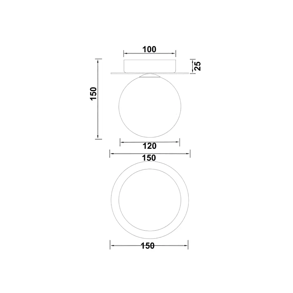 מידות: קוטר גוף 150 מ״מ, קוטר זכוכית 120 מ״מ