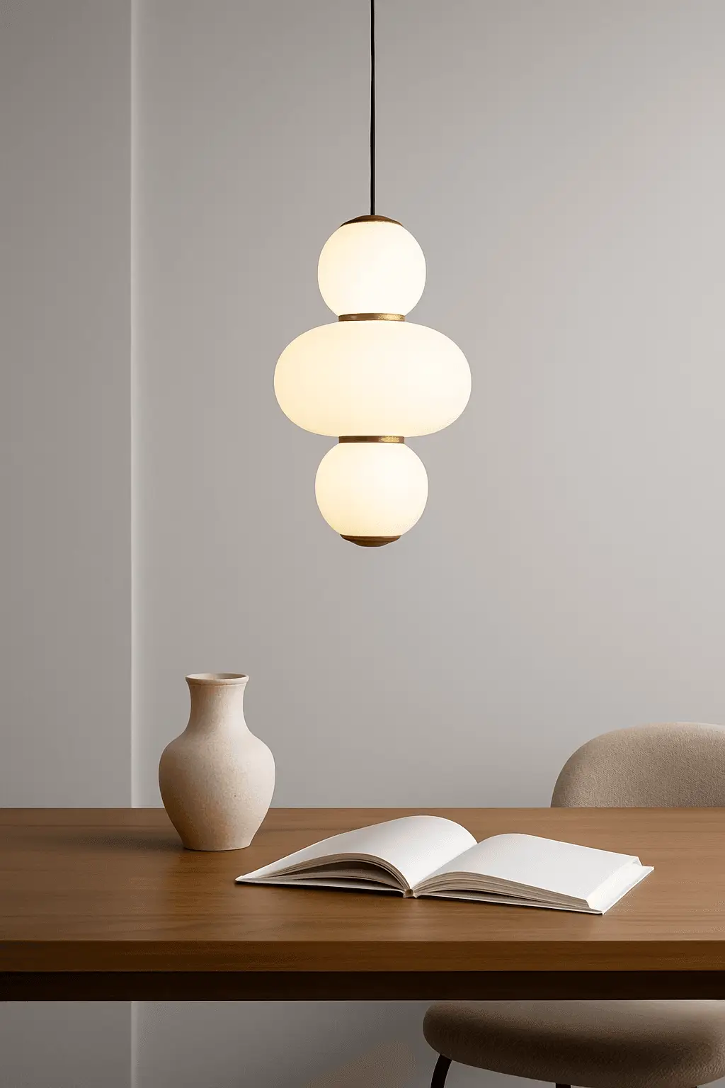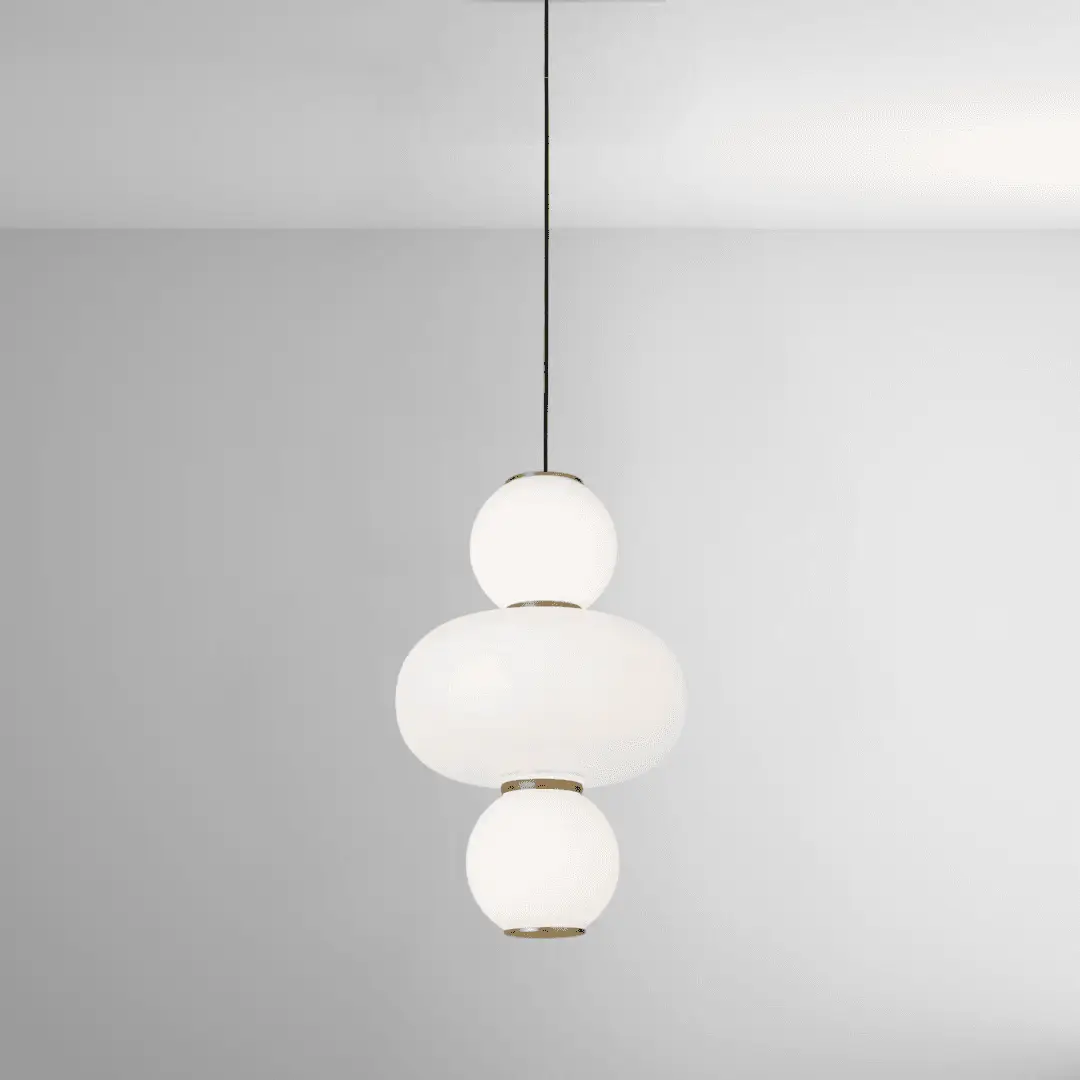 גוף תאורה תלוי מודרני עם זכוכית חלבית ופליז .