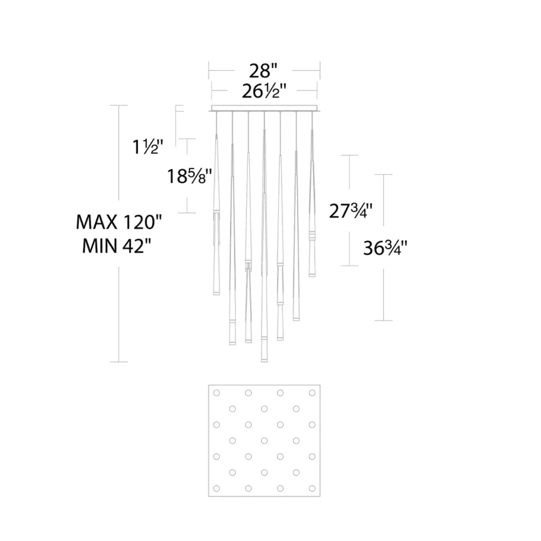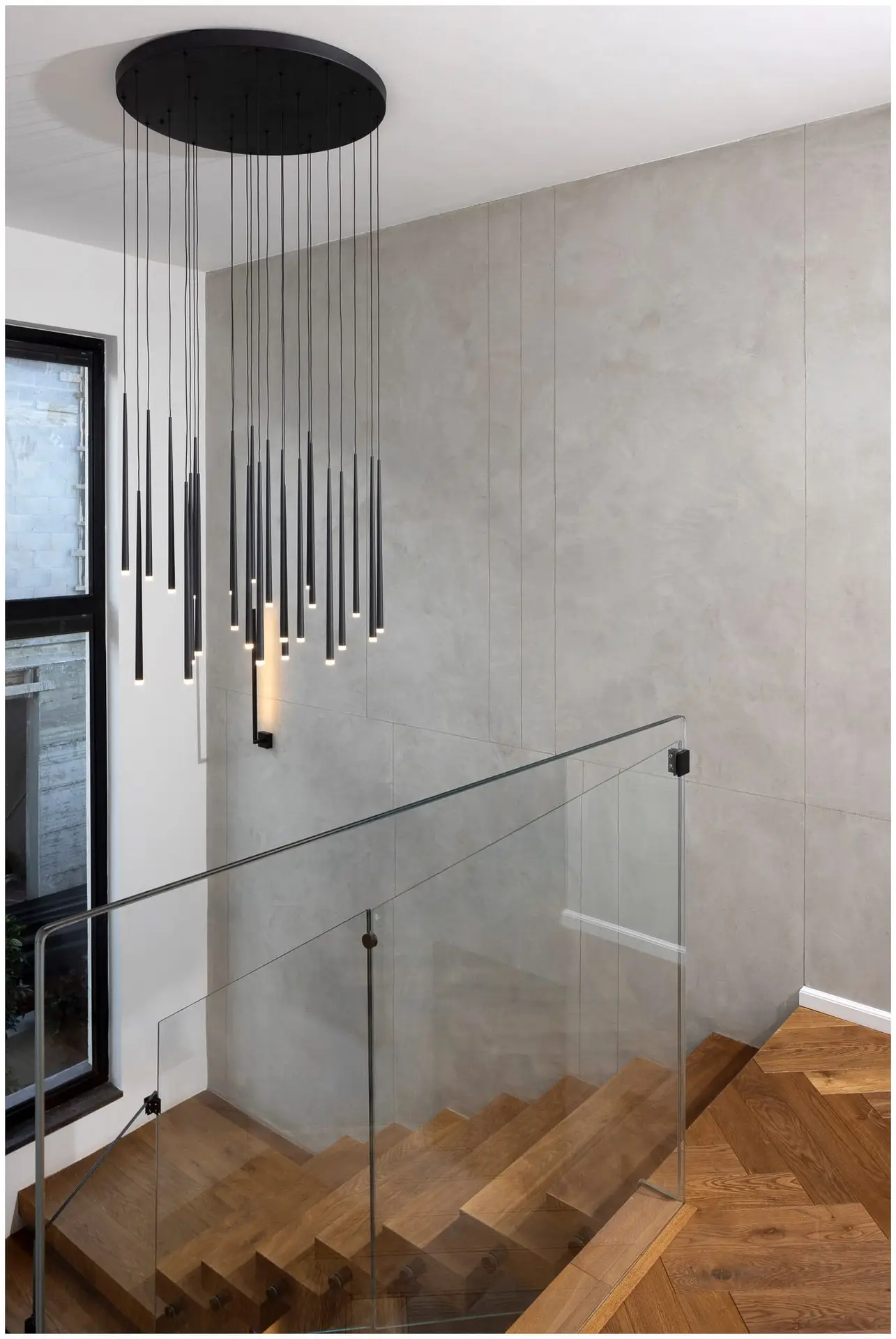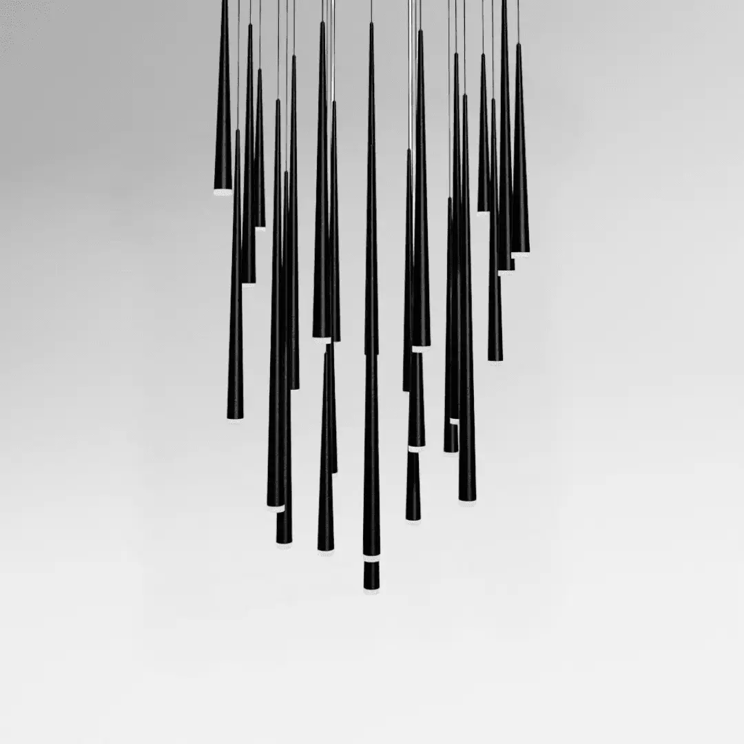 גוף תאורה תלוי – 24 צילינדריםעיצוב שחור אלגנטי עם תאורת LED פנימית.מושלם לחללים גבוהים.תאורה: LED בעוצמה של 72W | גוון אור חמים 3000K