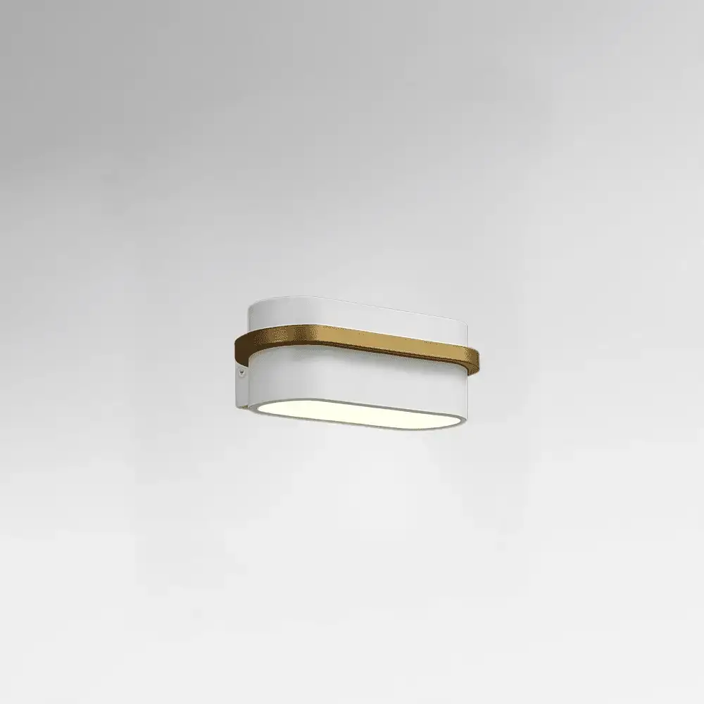 גוף לבן עם טבעת פליז דקורטיבית , בעיצוב מודרני ואלגנטי .