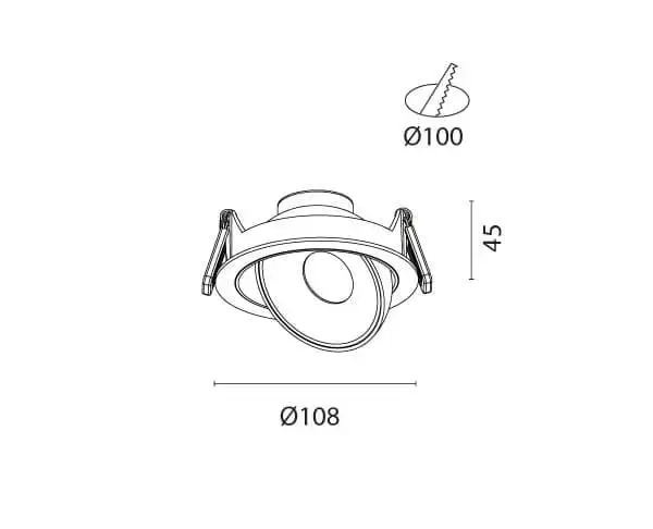 גוף תאורה שקוע מתכוונן לשימוש תאורת פנים.