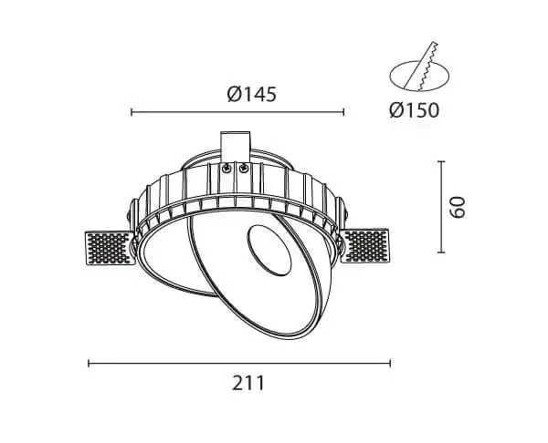 גוף תאורה שקוע מתכוונן לשימוש תאורת פנים.