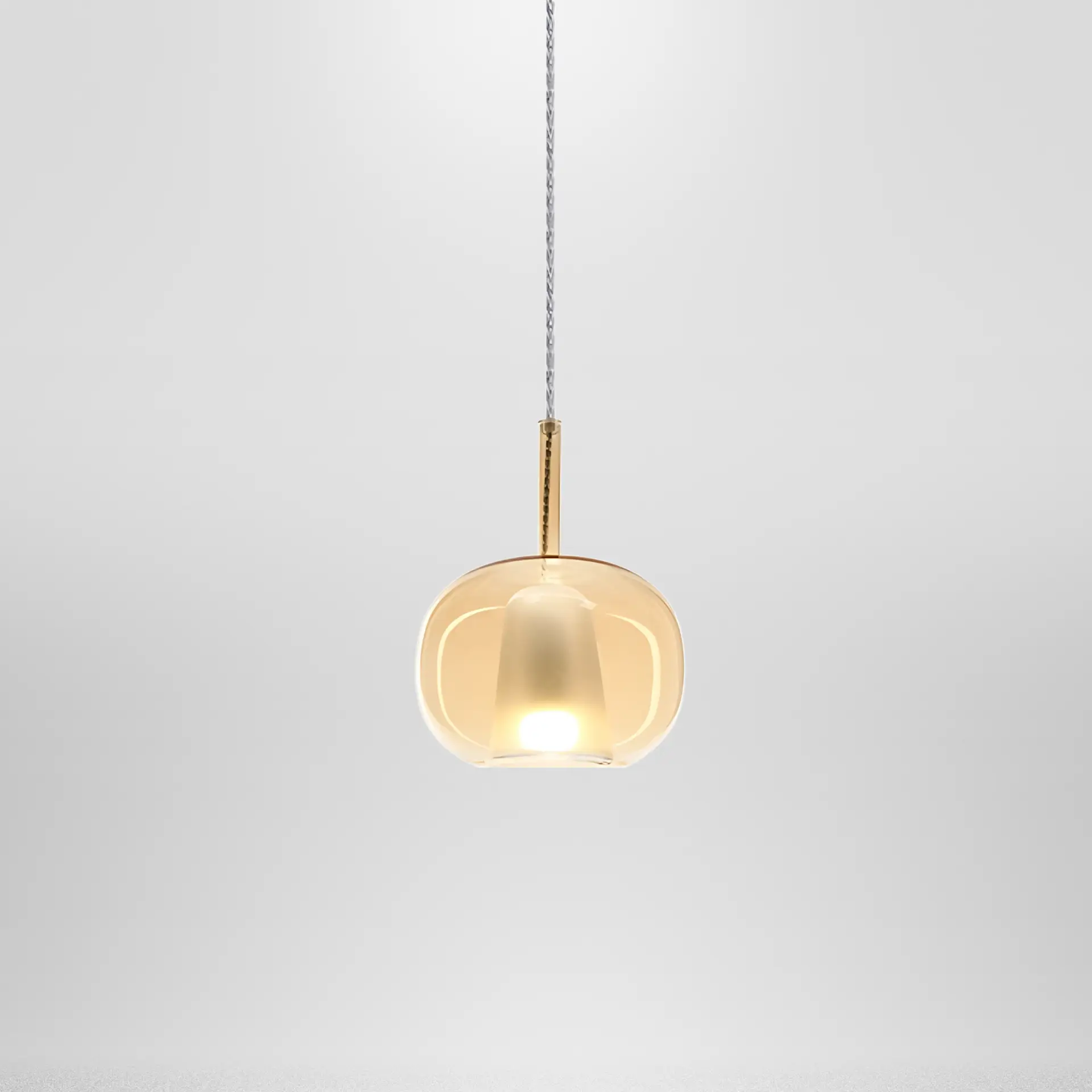 גוף תאורה תליה דגם דקו עם אהיל זכוכית בגוון אמבר קוטר 25