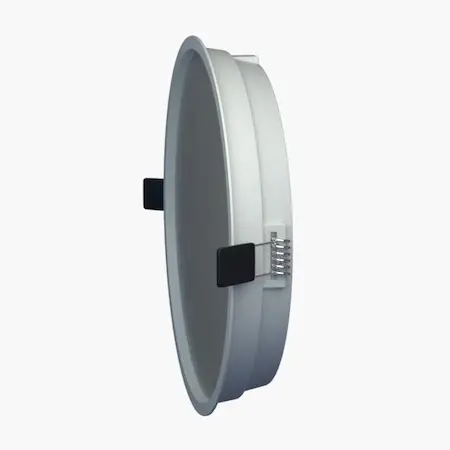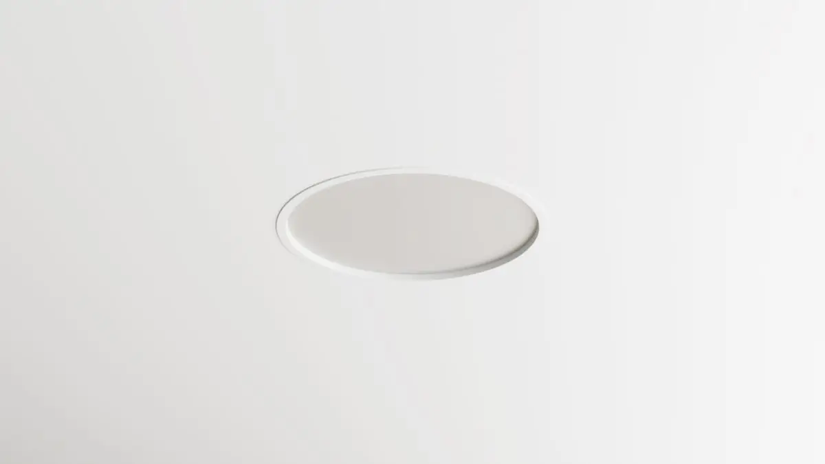 גוף תאורה שקוע לתקרת גבס עם שוליים בולטים.